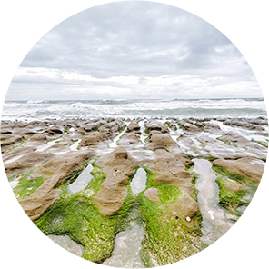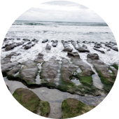 老梅石槽又稱綠石槽海岸,因為大片海藻附著在石槽上,放眼望去,綠意盎然,故而得名。是全臺少見的特殊景觀,吸引許多攝影愛好者或遊客來此駐足觀賞。〈資料來源:新北市政府觀光旅遊網〉